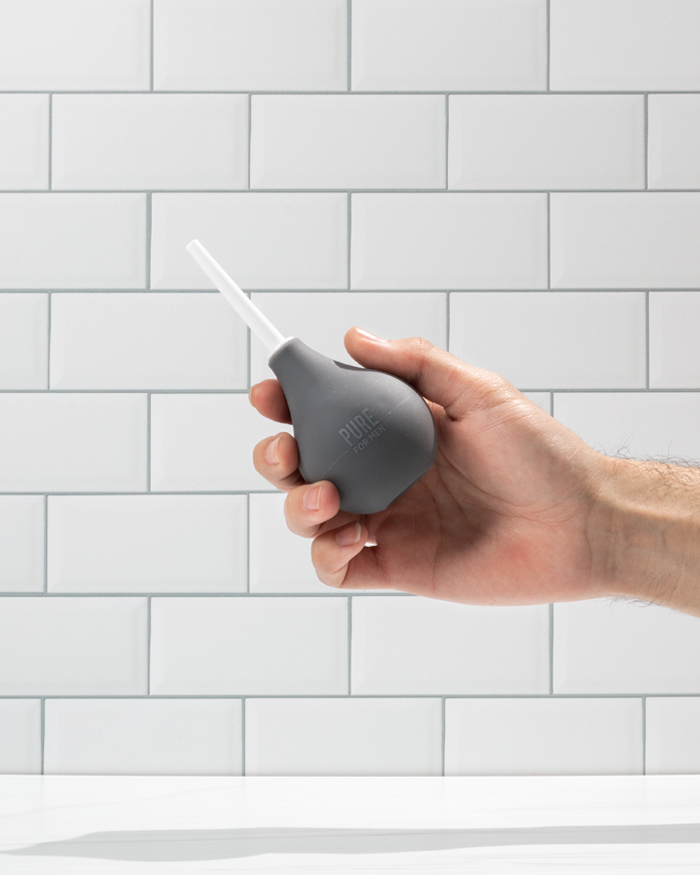 Fill the bulb with warm tap water and then gently squeeze to rinse the bum. Repeat as needed.